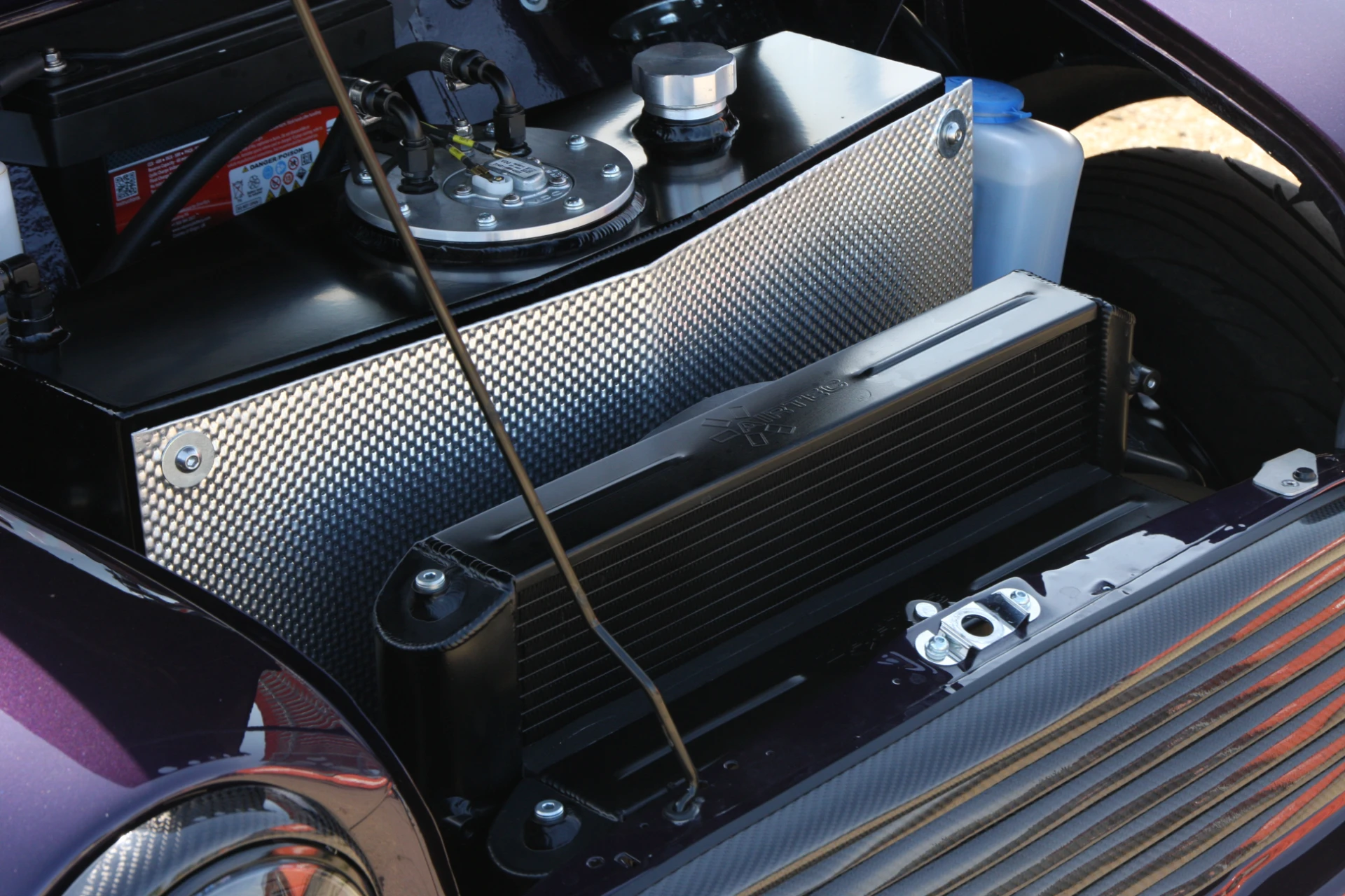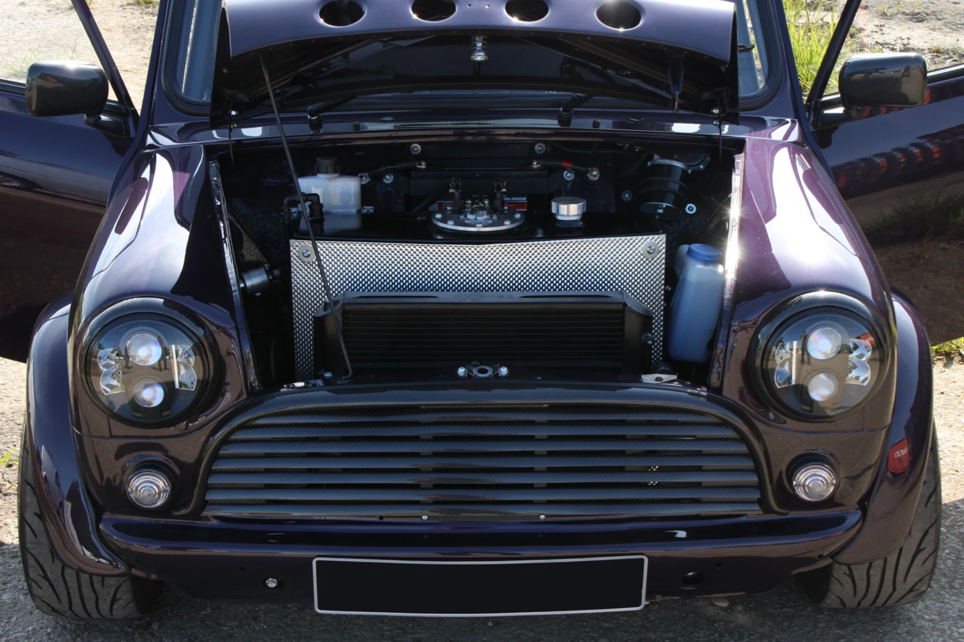 The Diminutive EU was created to redefine what a classic Mini can become. Blending the unmistakable essence of its original design with state-of-the-art engineering, this unique restomod houses a modern heart: a mid-mounted 2.3 Ecoboost engine delivering up to 420 horsepower to the rear wheels.